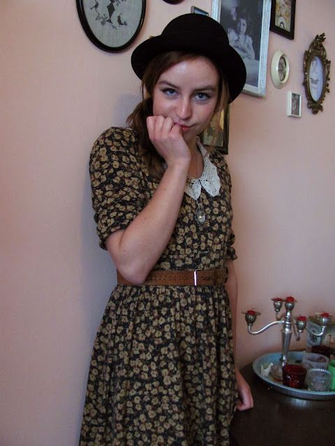 Enough to put me in full-blown Christmas mode! I even put up a mini-Christmas tree. Anyway. In these pictures I'm wearing a Zara dress, which unfortunately gets packed under at least three jumpers whenever I venture outside. I'm in love with the pattern and the collar! The pendant is actually an old brooch.